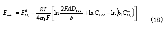 聯(lián)立等式(6)、(9)、(10)、(11)和(12)得到平衡混合電勢為: