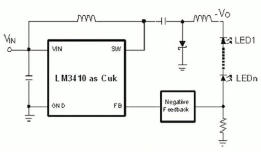 另外,Boost調(diào)節(jié)器不允許輸出電壓下降到輸入電壓以下。這個(gè)條件需要一個(gè)輸入端短電路并且使利用一個(gè)并聯(lián)FET實(shí)現(xiàn)調(diào)光變得不可能。。在Buck-Boost拓?fù)渲校⒙?lián)FET調(diào)光仍然不可能或者不切實(shí)際,這是因?yàn)樗枰粋€(gè)輸出電容(SEPIC,Buck-Boost和flyback),或者輸出短電路(Cuk和zeta)中的未受控制得輸入電感電流。當(dāng)需要真正快速PWM調(diào)光的時(shí)候,最好的解決方案是一個(gè)二級(jí)系統(tǒng),它利用一個(gè)Buck調(diào)節(jié)器作為第二LED驅(qū)動(dòng)級(jí)。如果空間和成本不允許的時(shí)候,下一個(gè)最好的原則就是一個(gè)串聯(lián)開關(guān)(圖4)。