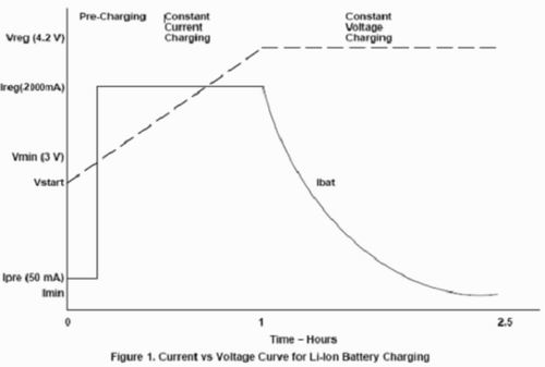 由于MSP430F20X3系列的指令速度可達(dá)16MIPS,且SD_16的采樣速度為4kSPS,而且電池電壓/電流/溫度變化緩慢,因此對(duì)電池組中單節(jié)電池電壓/電流/溫度檢測(cè)采用輪回檢測(cè)即可完全滿足系統(tǒng)設(shè)計(jì)需要;16位的高精度保證了對(duì)每節(jié)電池溫度、恒流、恒壓等要求的準(zhǔn)確控制。對(duì)單節(jié)鋰電池充電的曲線如圖3。
