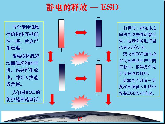 剛才跟大家介紹一下什么叫雷電和ESD,ESD就是靜電放電,雷電也屬于靜電放電,所以大家都知道ESD的危害性有多大。地球每秒鐘大概就有100多次閃電,每閃電一次能量就可以提供100w的燈泡供我們用3個(gè)月,在雨季平均每6分鐘就有一個(gè)人被雷電擊中,中國(guó)還不是受雷電受害最集中的地區(qū),在非洲這些地區(qū)受雷擊更嚴(yán)重,上海電視塔平均每年要遭受33次大的雷擊,今年4月13日上海電視臺(tái)電子設(shè)備遭受不同程度的雷擊,天線站玻璃鋼都起火了,變成一個(gè)大火球燒起來了。還有一次是1992年在北京國(guó)家氣象中心也受到雷擊,損失了2000多萬元。在全世界每年受雷電擊壞的設(shè)備都是以千萬為單位,每年遭受的損失都是上千億。我們現(xiàn)在使用的電子設(shè)備價(jià)格越來越高,對(duì)防雷的要求也越來越高。