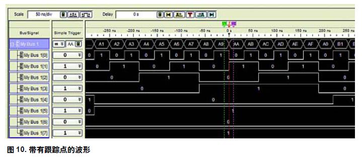 您能告訴分析儀在時(shí)鐘邊沿(上升或下降)捕獲數(shù)據(jù),并獲取移位寄存器的所有輸出。當(dāng)然在這種情況下,我們必須延遲跟蹤點(diǎn),以顧及通過移位寄存器的傳播延遲。