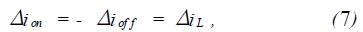 Δion為導通狀態(tài)紋波電流;ton為導通時間;Δioff為關(guān)斷狀態(tài)紋波電流;toff為關(guān)斷時間。
