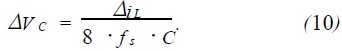 ΔVESR也會作為紋波的一部分表現(xiàn)在輸出端上,所以總的紋波表達式為式(10)和式(11)的和,即: