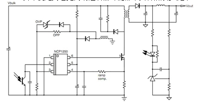 圖 1:NCP1250 典型應(yīng)用示例。