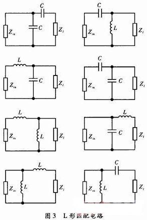 L形匹配電路:這類電路具有線路簡潔和成本較低的優(yōu)點(diǎn),缺點(diǎn)是窄帶電路。由于要考慮匹配和功率的損耗,盡量使用電感和電容性的元件,因此共有8種基本的電路可供選擇。要設(shè)計(jì)合理的匹配電路就要選擇合適的電容電抗元件參數(shù),計(jì)算元件參數(shù)有兩類方法:通過阻抗直接計(jì)算和通過史密斯圓圖。前者的優(yōu)點(diǎn)是計(jì)算精確且適合計(jì)算機(jī)計(jì)算,后者是一種直觀有效的設(shè)計(jì),可以充分合理地選擇最優(yōu)性能。現(xiàn)在可以通過使用計(jì)算機(jī)和功能強(qiáng)大的軟件直接設(shè)計(jì)。