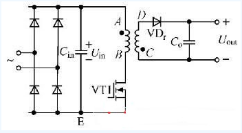 以反激式變換器為例,其主電路如圖1所示。