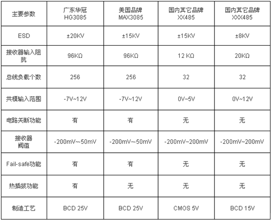 HG3085與MAX3085主要參數(shù)對比