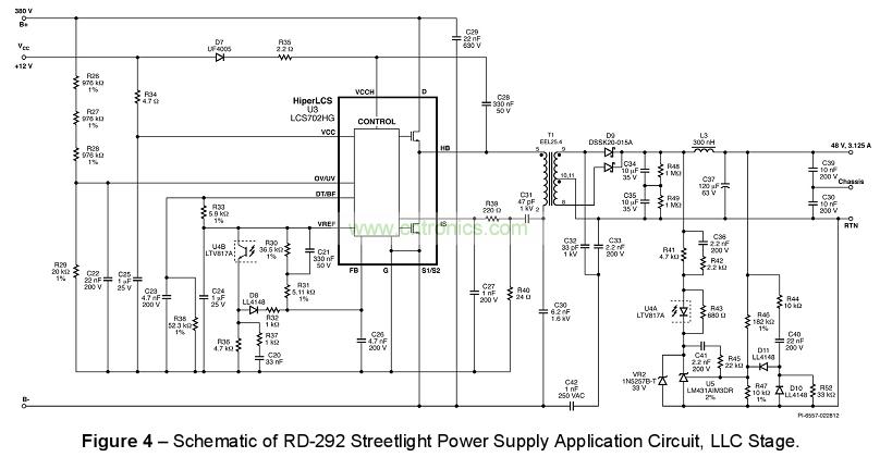 RDR-292 中所介紹的驅(qū)動器電路,在 230 VAC 和 110 VAC 輸入條件下效率分別可超越 93% 和 91% 。 此設(shè)計提供系統(tǒng)功率因子 (PF) 達 0.97 以上,THD 小于 10%,可輕松符合 EN61000-3-2 C。在相同的設(shè)計平臺下,只要簡單的從HiperPFS™( PFC)和HiperLCS™(LLC)家族成員中選擇不同的轉(zhuǎn)換器 IC以及對應(yīng)的功率器件的大小,就能將設(shè)計在 75 W 到 400 W 之間進行調(diào)整。
