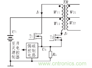 圖2:推挽式開(kāi)關(guān)電源防偏磁原理圖