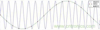 簡(jiǎn)單溫習(xí)奈奎斯特采樣定理:如果信號(hào)是帶限的,且采樣頻率Fs高于信號(hào)最高頻率Fmax的兩倍,采樣樣本中完整地保留了原始信號(hào)中的信息。而高于或等于采樣頻率的一半頻率分量,則會(huì)導(dǎo)致混疊現(xiàn)象,如圖 5所示由于采樣頻率過(guò)小,每個(gè)信號(hào)周期樣本數(shù)量太少,重建后的波形頻率分量落到低于采樣頻率的頻率范圍中,與原始信號(hào)大相徑庭。