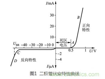 提到二極管,大家最熟悉的就是二極管的單向?qū)щ娦裕从撤睬€上如圖1所示。當(dāng)正向偏壓U=0.5V(硅管)時,二極管開始導(dǎo)通,電流越大電壓越大,具有很低阻抗;當(dāng)加反向偏壓時二極管不導(dǎo)通,在一定范圍內(nèi)有很小的漏電流,具有很大阻抗。其這個單向?qū)щ娦?,也起到了開關(guān)的作用,所以在整流和開關(guān)方面都有廣泛的應(yīng)用。