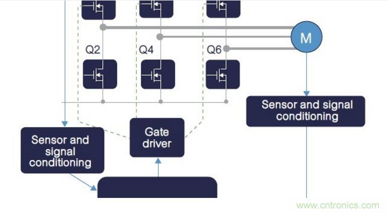 在電橋拓?fù)鋬?nèi),反向恢復(fù)過程從下橋臂開關(guān)(圖7中的Q2)續(xù)流結(jié)束時開始,到上橋臂開關(guān)(圖7中的Q1)開始導(dǎo)通時終止,且最終的恢復(fù)電流加到上橋臂電流內(nèi)。連同上橋臂開關(guān)上的額外電流,下橋臂反向恢復(fù)過程與Vds≈0V到Vdc換向操作,可能會在下橋臂開關(guān)閘源電壓上產(chǎn)生雜散跳變電壓,因為下橋臂Ciss(輸入電容)是透過Crss(Miller電容)完成充電過程。