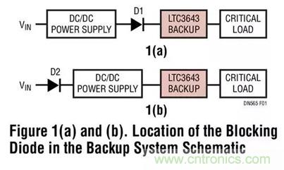 一種可行的解決方案是把二極管移動到供電 DC/DC 轉(zhuǎn)換器的輸入端 (D2),如圖 1b 所示。遺憾的是,在此情形下,連接至上游 DC/DC 電源的非關(guān)鍵負(fù)載會從備份電源吸取功率,因而留給關(guān)鍵負(fù)載的電能較少。