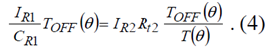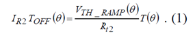 在功率開關(guān)管關(guān)斷期間,CR1電容的充電電流是IR1恒流,CR1電容上的電壓VRAMP (θ)線性升高: