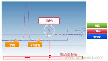 由于潮濕的表面,會(huì)增加電容量。即使在潮濕的表面,也能正確識(shí)別按鍵,從而避免了電容自感方式下的觸摸誤動(dòng)作。