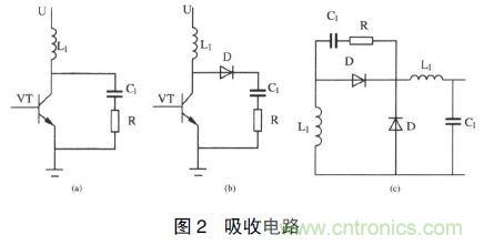 開關電路在開關電源中起著關鍵的作用, 同時也是主要的干擾源之一。開關管負載為高頻變壓器初級線圈, 是感性負載。其在導通瞬間, 初級線圈產(chǎn)生很大的涌流, 并在初級線圈的兩端出現(xiàn)較高的浪涌尖峰電壓; 在斷開瞬間, 由于初級線圈的漏磁通, 致使一部分能量沒有從一次線圈傳輸?shù)蕉尉€圈, 儲藏在電感中的這部分能量將和集電極電路中的電容、電阻形成帶有尖峰的衰減震蕩, 疊加在關斷電壓上, 形成關斷電壓尖峰。如果尖峰有足夠高的幅度, 那么很有可能把開關管擊穿。