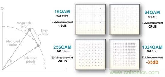 不同調(diào)變階數(shù)的EVM指標要求