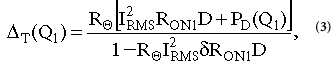 其中δ是R ON的溫度系數(shù),單位為°C -1,P D是動(dòng)態(tài)損耗項(xiàng),與R ON無關(guān)。