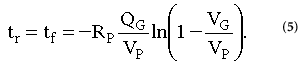 當(dāng)V G達(dá)到V P的 99%時(shí),MOSFET完全導(dǎo)通。如果將此關(guān)系替換回公式5,則上升和下降時(shí)間將減少為: