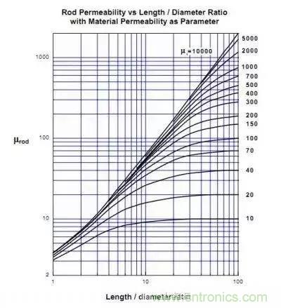 圖中橫坐標(biāo)是磁棒的長(zhǎng)度與直徑之比,隨長(zhǎng)度變短氣隙變小等效磁導(dǎo)率也變小,這好像不合理,我們看磁環(huán)的電感計(jì)算公式: