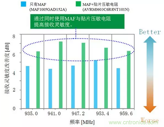 圖8:通過同時(shí)使用貼片壓敏電阻提高接收靈敏度的效果