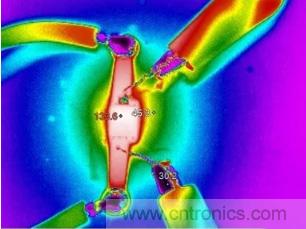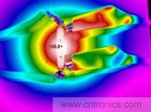 將10cmX10cm的二層PCB板的覆銅改為1OZ,重復(fù)上面實(shí)驗(yàn),測(cè)量的溫度如下圖所示。