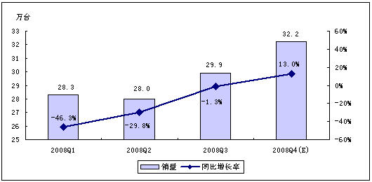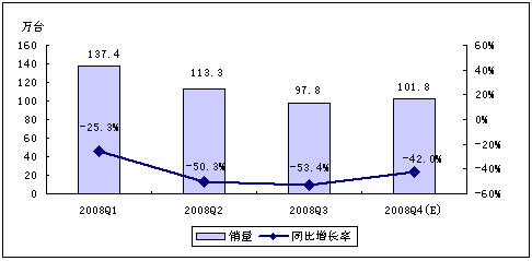 - 賽迪顧問預(yù)計(jì),2008年第四季度,中國(guó)MP3/PMP市場(chǎng)銷量為134.0萬臺(tái)
