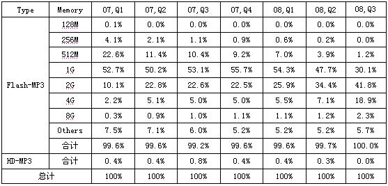 - 閃存型MP3播放機(jī)占據(jù)絕對(duì)主力,硬盤型退出市場(chǎng)