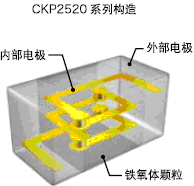 - CKP2520系列是在薄膜上印刷內(nèi)部電極,通過(guò)通孔實(shí)現(xiàn)層間的連接,使內(nèi)部電極在螺旋上形成的