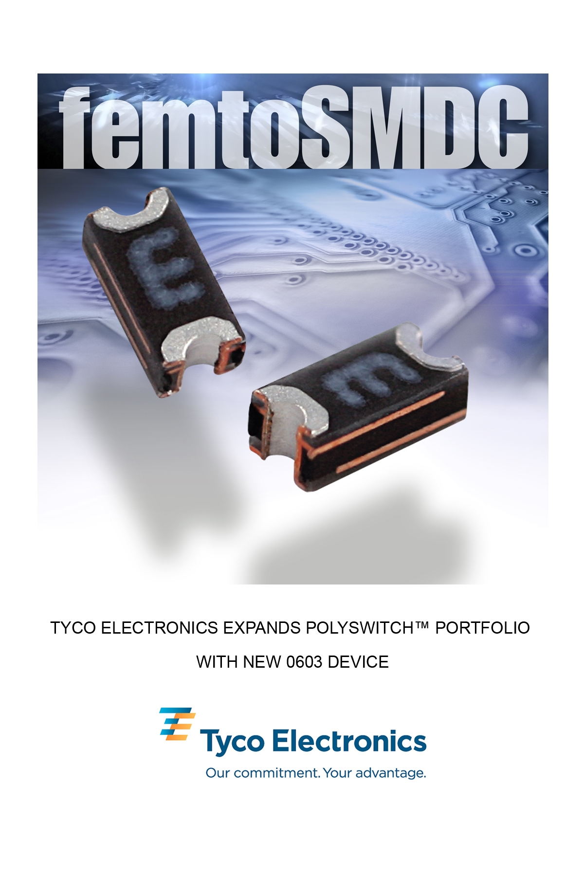 泰科電子(Tyco Electronics)今天宣布其廣受歡迎的表面貼裝PolySwitch™器件系列再添一款符合行業(yè)標(biāo)準(zhǔn)的新型0603器件。femtoSMDC016F器件的占板面積不到上一代器件的一半,并且有助于保護(hù)敏感電子電路免受過流及過溫事故的損壞。該器件的快速動作時(shí)間和可復(fù)位功能可幫助制造商降低保修費(fèi)用和提高各種便攜式電子產(chǎn)品的可靠性,比如以下產(chǎn)品: