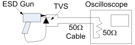比較保護二極管鉗位電壓的最佳途徑是采用示波器來對發(fā)生ESD事件期間通過二極管的實際電壓波形進行屏幕截圖。這可以通過圖1所示的測試設(shè)置來實現(xiàn)。[page]