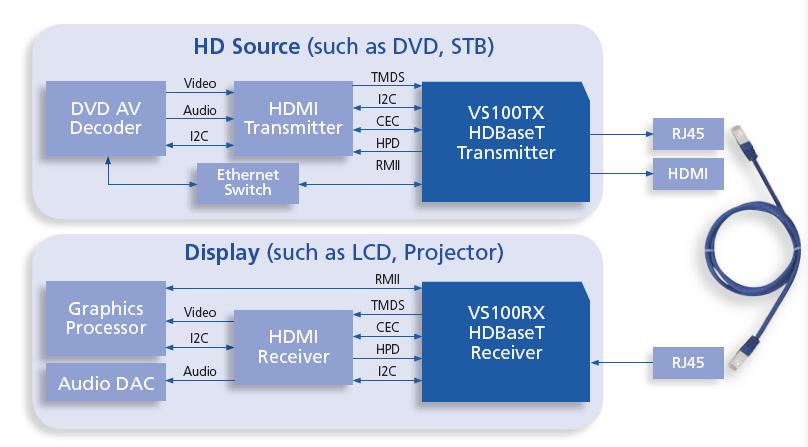 HDbaseT技術(shù)與現(xiàn)有HDMI傳輸方案配合,設(shè)計十分簡單,為STB和TV廠商提供更多賣點
