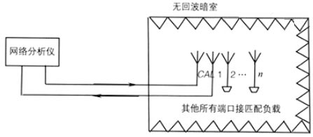 有源輸入回波損耗區(qū)別于普通的回波損耗的地方在于它是在各個單元端口均有輸入信號,且是形成不同方向波束的情況下的回波損耗,因此將它叫作有源輸入回波損耗,測量示意如圖2所示。