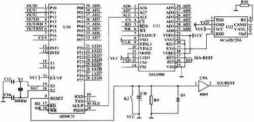 ECU(AT89C51)+CAN控制器(SJA1000)+CAN收發(fā)器(PCA82C250)的電路結(jié)構(gòu)以下是其核心芯片簡介: