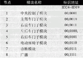 表2車身控制模塊各節(jié)點(diǎn)地址分配