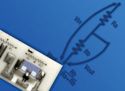 目前主要有兩種實(shí)現(xiàn)電阻型分壓器的方式:通過將兩個(gè)分立的片狀電阻連接到公共端,或者通過使用分壓器封裝在內(nèi)部的電阻網(wǎng)絡(luò)進(jìn)行連接。你所選擇的類型可能會(huì)對(duì)分壓器的性能有很大的影響。