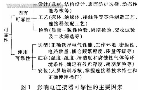 電連接器的可靠性包括固有可靠性和使用可靠性兩方面。圖1列出了影響電連接器可靠性的主要因素。