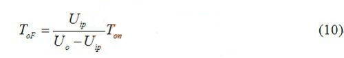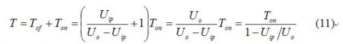 可見(jiàn),輸出電壓Uo一定大于輸入電壓Uip,如果輸出電壓接近輸入電壓,在輸入電壓峰值附近截止時(shí)間遠(yuǎn)大于導(dǎo)通時(shí)間,開(kāi)關(guān)周期很長(zhǎng),即頻率很低。