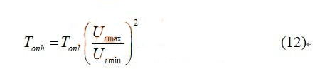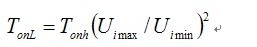 如果首先決定最低輸入電壓(Uimin)對(duì)應(yīng)的導(dǎo)通時(shí)間為TonL,最高輸入電壓(Uimax)的導(dǎo)通時(shí)間為