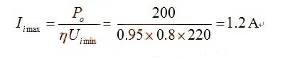 例:輸入220V±20%,輸出功率200W,采用臨界連續(xù)。假定效率為0.95.