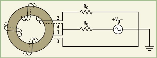 這種寬帶unun阻抗變壓器對(duì)測(cè)試電路、光接收器系統(tǒng)、帶寬帶阻抗匹配的微波電路,以及天線耦合也很有用??捎糜诟哳l電路設(shè)計(jì)及仿真的現(xiàn)代計(jì)算程序在自己的工具箱里就收納了這種器件。寬帶unun阻抗變壓器包含了一個(gè)纏繞了雙絞傳輸線的環(huán)形鐵氧體磁芯,繞線間通過釉質(zhì)膜隔離。結(jié)合常規(guī)傳輸線阻抗變壓器的設(shè)計(jì)元件,有可能建立起一個(gè)真正的寬帶組件。對(duì)1:4阻抗轉(zhuǎn)換比而言,這種設(shè)計(jì)方式可提供很高的效率。