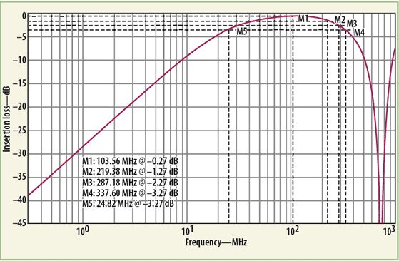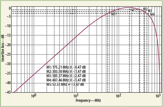 MathWorks的MATLAB數(shù)學(xué)分析軟件曾被用來(lái)分析這種變壓器器件模型的響應(yīng)。分析中,把單獨(dú)的低頻(公式1)響應(yīng)和高頻(公式5)響應(yīng)的插損響應(yīng)結(jié)合在了一起。將所需的目標(biāo)值代入MATLAB公式,可獲得寬帶變壓器的最終響應(yīng)。為了執(zhí)行MATLAB模型數(shù)值響應(yīng)的電氣仿真,使用了ADS建模軟件。該軟件有一個(gè)很有用的內(nèi)部源模型,稱為XFERRUTH,其變量參數(shù)包括匝數(shù)(N)、電感因子(AL)、傳輸線特性阻抗(Z)、傳輸線電氣長(zhǎng)度(E),以及計(jì)算傳輸線長(zhǎng)度所需要的參考頻率(F)。