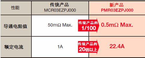 1) 導通電阻值達Max0.5mΩ(是傳統(tǒng)厚膜型的1/100)