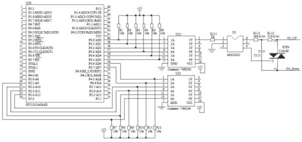 可控硅相控調(diào)光電路如圖3 所示。單片機的控制信號經(jīng)74HC04反相后送到光耦MOC3023,光電隔離后輸入到可控硅T16C6F 的控制極,控制可控硅的導(dǎo)通角,實現(xiàn)調(diào)光。