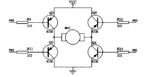 本系統(tǒng)將以不同的電機做出不同的動作,來模擬說明智能家居對系統(tǒng)控制的響應。如圖5所示,當分機的單片機收到本機的地址信息,便提取信息中的數據,根據數據的命令,若把P0.0,P0.1腳置成低電平,其他為高電平,則Q3、Q4管導通,電機便正向旋轉,若把P0.2,P0.3腳置成低電平,其他為高電平,則Q5、Q6管導通,電機便反向旋轉(以前一情況為正向時)。若一臺分機上連多個電機,有多臺分機,便可以實現在智能家居環(huán)境中對家庭各個設備的同步控制。