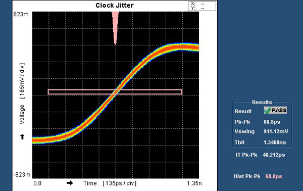 圖3:利用DPO進(jìn)行時鐘抖動測試。