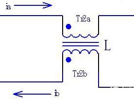 圖1所示的是共模電感的濾波電路,Tr2a和Tr2b就是共模電感L的兩個線圈。這兩個線圈繞在同一磁芯上,匝數(shù)和相位都相同。這樣,當(dāng)電路中流過電流ia和ib的大小相同、方向相反時(shí),電流在同相位繞制的電感線圈中產(chǎn)生反向的磁場而相互抵消,磁芯中沒有交變的磁通量產(chǎn)生。