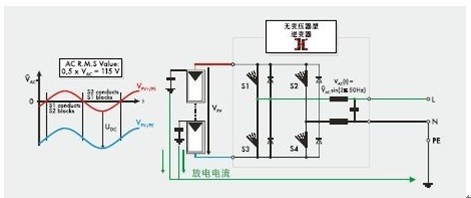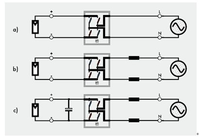 將來(lái)自光伏組件的電壓采用高頻率(20kHz)轉(zhuǎn)換過程中,高頻電壓應(yīng)等同于電網(wǎng)電壓峰值;這些電壓在逆變器內(nèi)部被認(rèn)為是干擾,濾波器可以阻斷這些干擾,防止其進(jìn)入電網(wǎng)。但在理論上,阻止來(lái)自發(fā)電電源側(cè)的直流分量進(jìn)入交流電網(wǎng)是不可能絕對(duì)實(shí)現(xiàn)的。