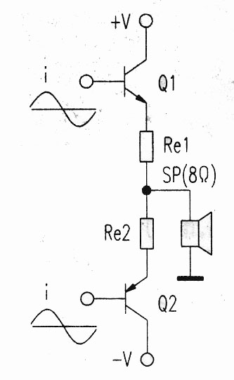 圖1 甲類(lèi)推挽式功放輸出電路 圖2 輸出電路分解圖