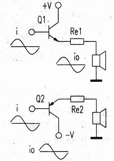 甲類(lèi)功放多采用NPN與PNP配對(duì)的推挽式工作方式。推挽式甲類(lèi)功放電路,可以看成是由2個(gè)單管式甲類(lèi)射極器組成。